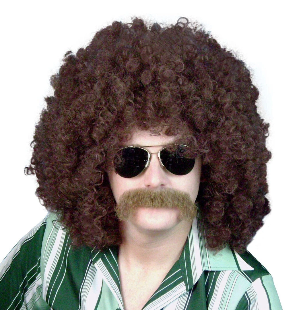 Boasting a looser curl, these 70’s styles fall a little longer than our other afro costume wigs. Great for Hippies, mo and glasses sold separately, also available in blonde. Â