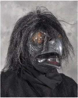 Realistic Raven/Black Bird sculpt. The sock mask design with the latex sitting on top of the sock allows the actor the capacity to make the mask move simply by making facial expressions. The sock acts a buffer for the actors skin to the latex adding to the comfort. Very comfortable to wear with excellent visibility.Perfect as a decoration for haunted mazes