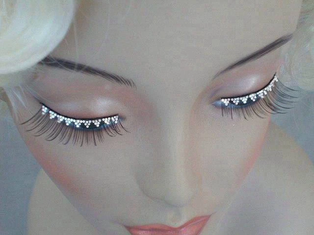 These false eyelashes bring the glitz with a beautiful jewel trim. Great for Hollywood and Flappers. Includes latex glue.