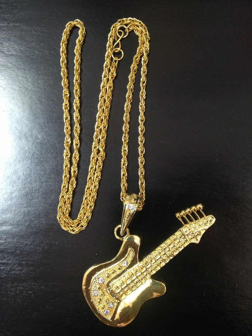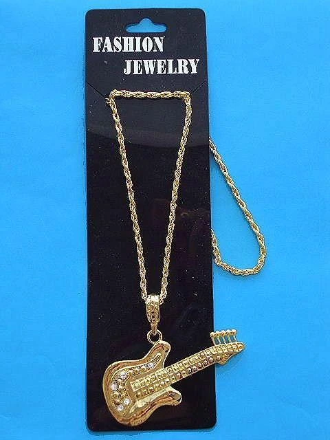 Gold metal guitar necklace, perfect fashion accessory for a Rockstar dress up.
