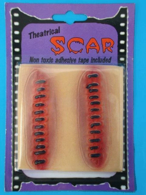 Achieve instant gore with these easy to use stitches scars. Cut out, stick on, apply fake blood liberally and you’re ready to go. Non toxic adhesive tape included.Â
