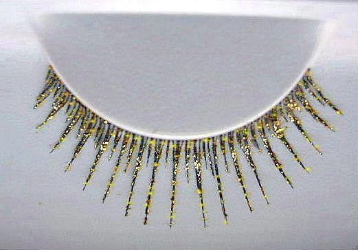Straight gold and black lashes with glitter throughout. Great accessory to give that extra touch. Latex glue included.
