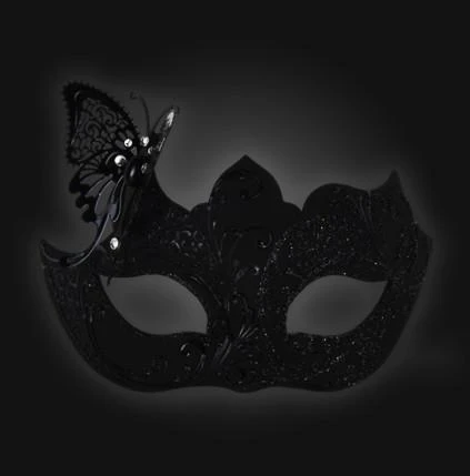 Intricate, delicate, feminine, the Little Butterfly is an embellished black Venetian ladies filigree mask with black a butterfly. Handmade in Venice, Italy. Comes with certificate of authentication.
