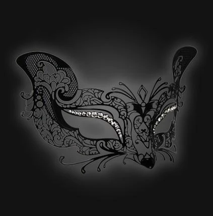 The Micio (“kitten” or “pussy cat” in Italian) mask is a little bit whimsical, a little bit elegant and a lot adorable. Metal with crystal embellishments and secures with a ribbon. Handmade in Venice, Italy. Comes with certificate of authentication.Â