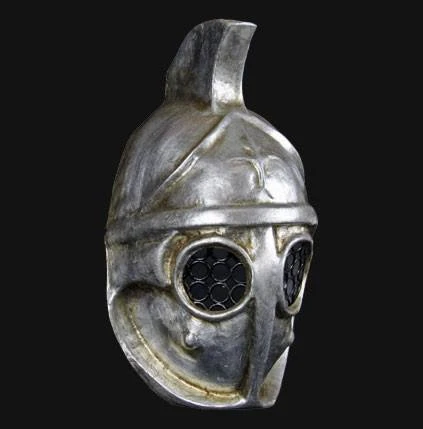 Awesome handmade plaster mask in the style of a Roman Gladiator. Made in Venice, it comes with a certificate of authenticity. The mask is wearable and secures with a ribbon but is also displayable with a small wall hanging triangle attached to the top.
