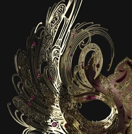 An achingly beautiful ladies Venetian masquerade mask, the deluxe mask is handmade with a metal base. Luxurious asymmetrical swan design in gold with pink detailing. Secures in place over your eyes with a white ribbon. Comes with certificate of authentication.