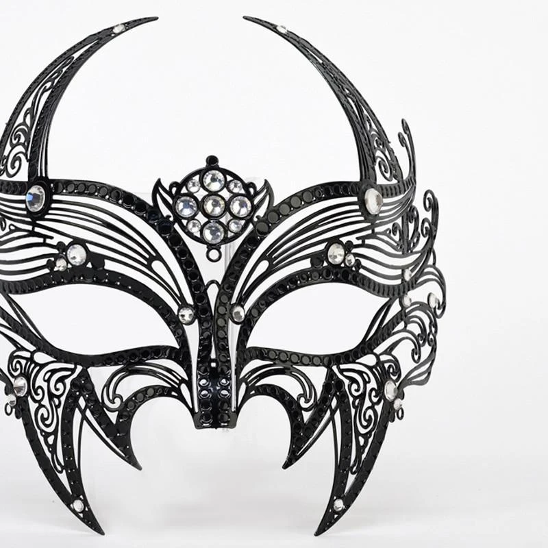The Diavolo Devil women’s masquerade deluxe metal mask features a stylish Halloween design with crystal embellishment. Handmade in Venice, Italy. Comes with certificate of authentication.