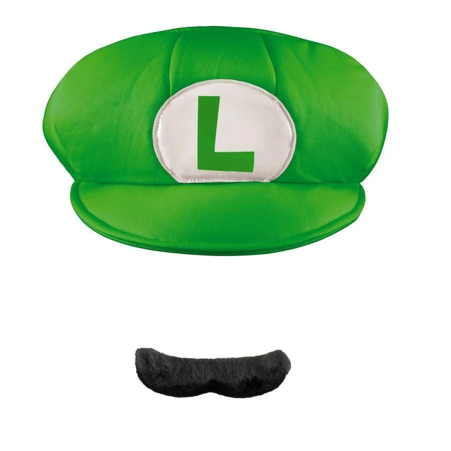 Dress up as your (second) favourite Nintendo character, Luigi from Super Mario. This kit for adults includes green Luigi cap with L and self adhesive faux moustache. Mario kits also available.