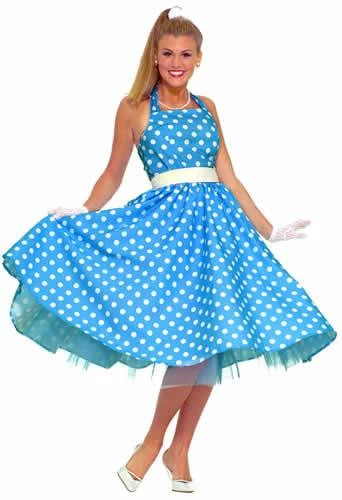 Costume includes halterneck dress with tulle petticoat, belt, gloves and wig of your choice.