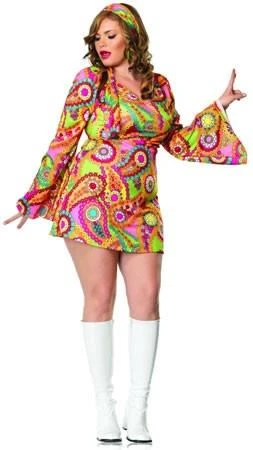 Groovy 1960s and 1970s style Go Go Costume to hire. Costume includes dress, go go boots and wig of your choice. Our boots come in white, pink, yellow, silver, green, red, black. We have numerous wigs to choose from.