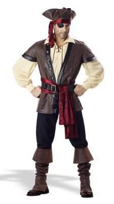 Costume includes shirt, vinyl vest, sash, belt, hat with attached headband, pants, bootcovers.