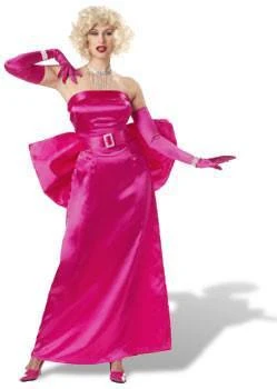 A kiss on the hand may be quite continental but diamonds are a girls best friend! From the film ‘Gentlemen prefer blondes’ comes one of Marilyn Monroes’ most iconic dresses. Pink strapless dress, pink belt with pink buckle and large puffy pink bow, gloves, wig.