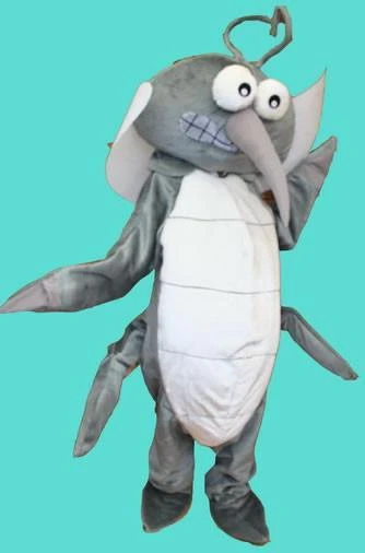 Body and mask are grey fur, white wings attach to back of jumpsuit.