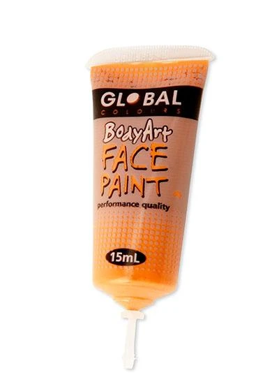 Apply Orange Body Paint and Face paint with brush, finger or sponge. Dilute with water for airbrushing. Removes easily with soap and water. There are few things you will keep for your entire life. Your skin however is definitely one of them. This is a fact we kept in mind when we formulated our range of Global Colours BodyArt. The ease with which you can apply the bright silky smooth colours and wash them is no accident.