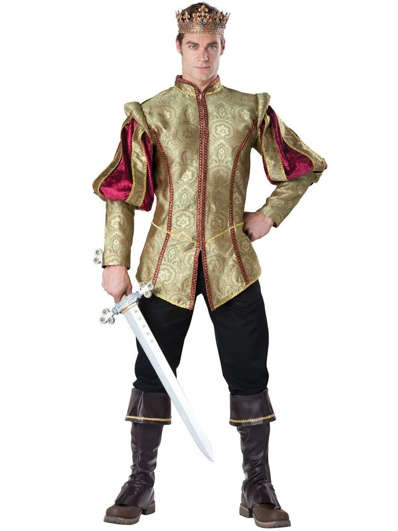 Whether you have a true claim to the throne or not you’ll look like a Medieval king in this beautiful lush costume which includes greenish-gold brocade and panne doublet with gold trim, bootcovers and crown. Tights and various toy swords also available with hire. Perfect for Game of Thrones parties as deplorable Joffrey or sweet but insipid Tommen.