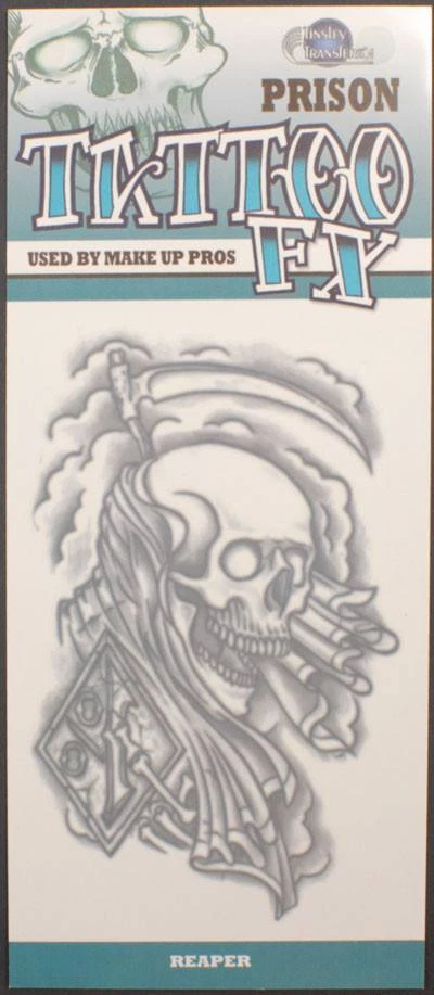 Temporary prison reaper with sickle transfer stick-on tattoo. Looks real. Classic jail house tattoo.