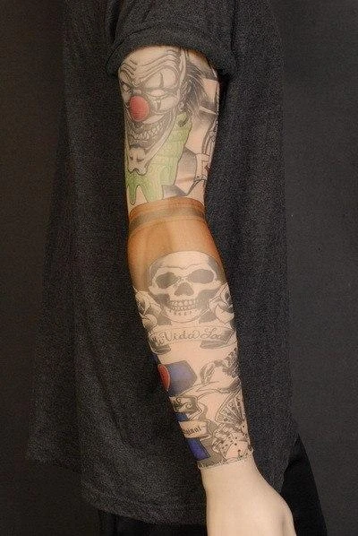 Realistic Tattoo Sleeve for one arm featuring nightmarish clowns and skulls.Â