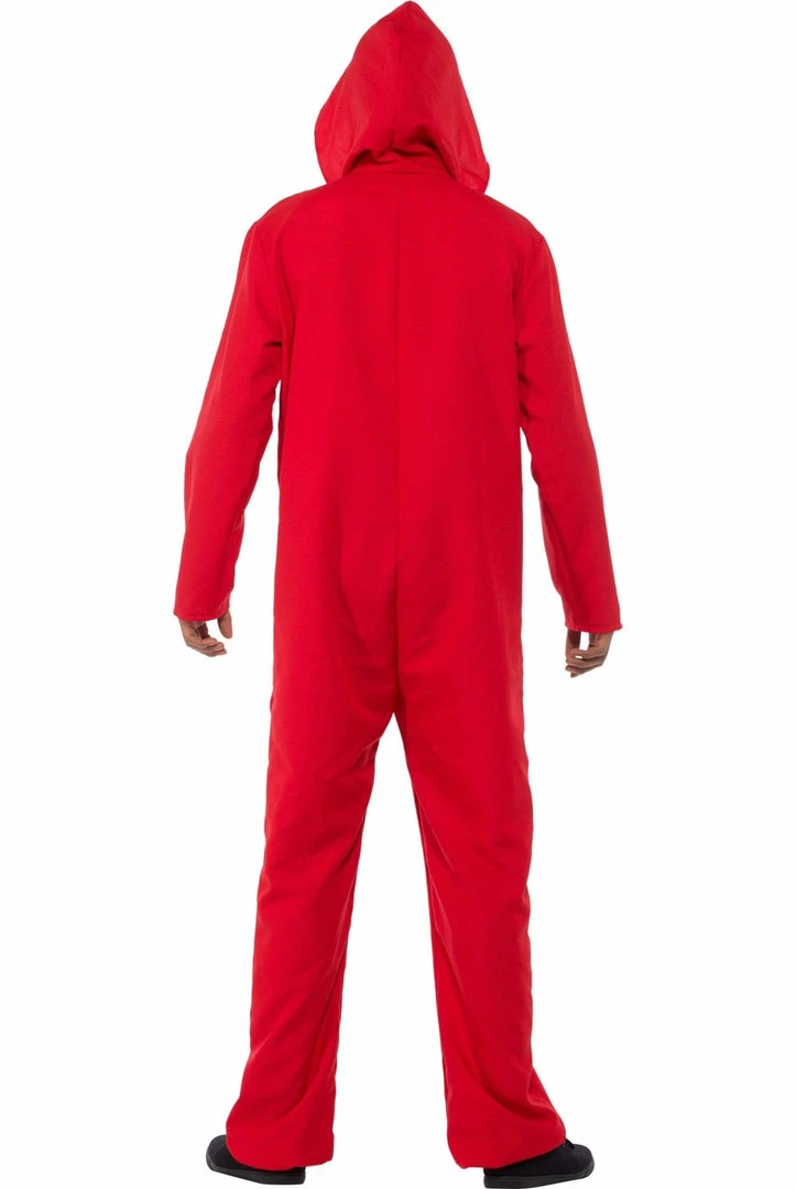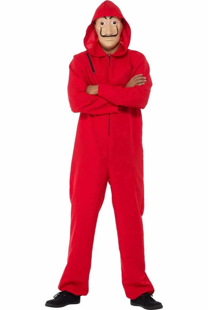 Dress up like a criminal mastermind in this Money Thief Costume for adults. Or add one of our Squid Game like masks to the red jumpsuit and dress up like you’re participating in a high stakes game of survival. Either way you’ll be wearing the costume from one of the two recent most binge worthy shows. Costume is red hooded jumpsuit and Dali like mask.