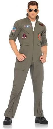 Feel the need for speed back to the 80s in this iconic Top Gun costume. Hire includes green flight suit with attached badges and Maverick or Goose interchangeable name badges. Aviators sold separately.