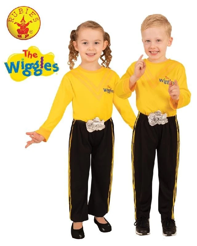 Deluxe Yellow Wiggle Emma pants costume for toddlers and children. Join your friends Anthony, Lachy and Simon, hop into your big red car and start singing along to all those famous Wiggley tunes as you dress up as your favourite Yellow Wiggle, Emma! Unisex costume for girls and boys.