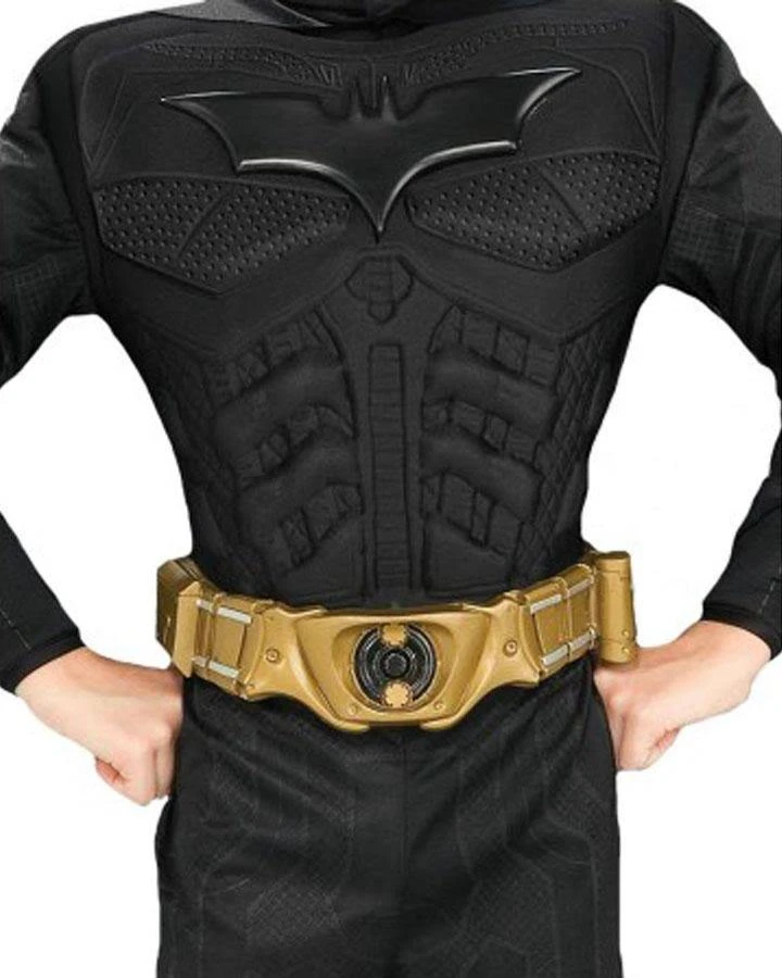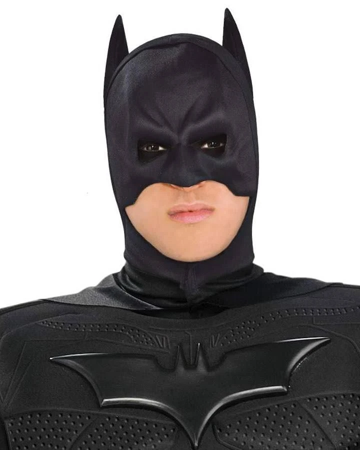 The Dark Knight Rises Batman costume includes muscle chest jumpsuit with boot tops, headpiece with cape, belt. See our heroes and villains collection