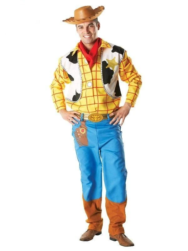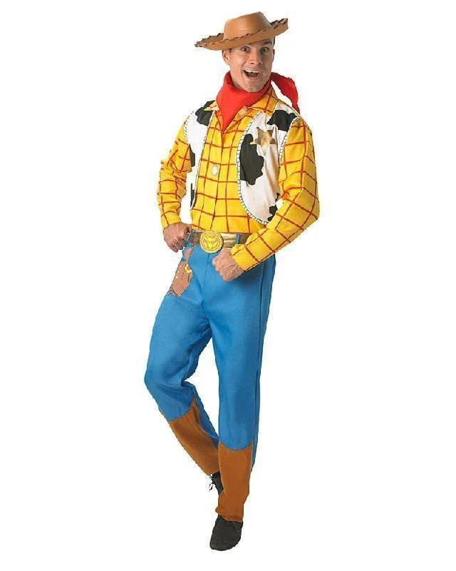 Andy’s favourite toy and everyone’s favourite cowboy, Woody from Toy Story. Â A Disney classic along with his pal, Buzz Lightyear. This Woody costume for adults includes yellow and red shirt, mock waistcoat, pants with printed belt buckle and holster, attached boot-covers, neckerchief and hat. Great for 90’s parties.