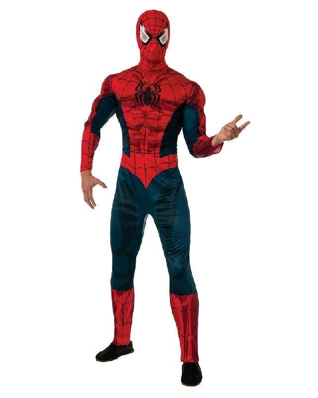 Get your spidey senses tingling as Marvel’s Amazing Spider-Man in this deluxe muscle chest Spiderman costume for adults. This licensed Rubies costume includes jumpsuit with muscle torso and arms and character hood.