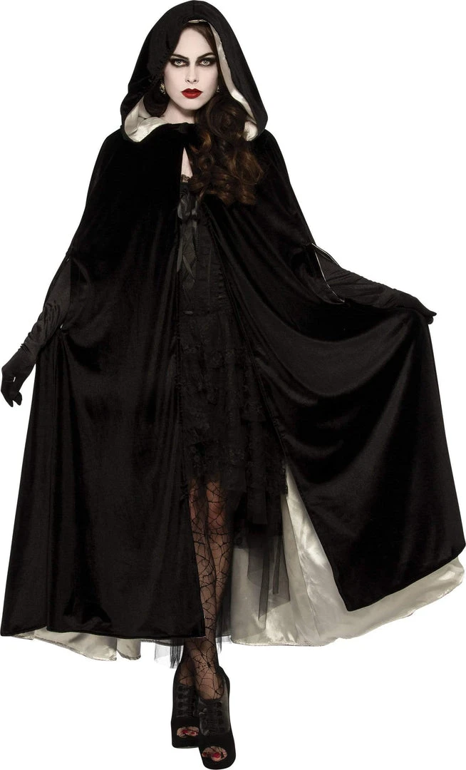 This velvet hooded cape will have you disguised until you’re ready to make your kill this Halloween. With one side black and the reverse side white, the only thing you need to decide if you’ll be good or evil…