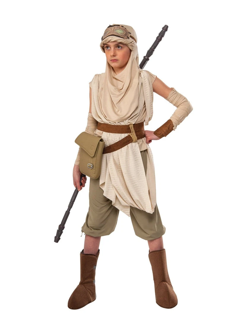 - Headpiece with attached cowl, fabric goggles with elastic strap plus padded boot tops with Velcro fasten at inner sides. Staff not included.