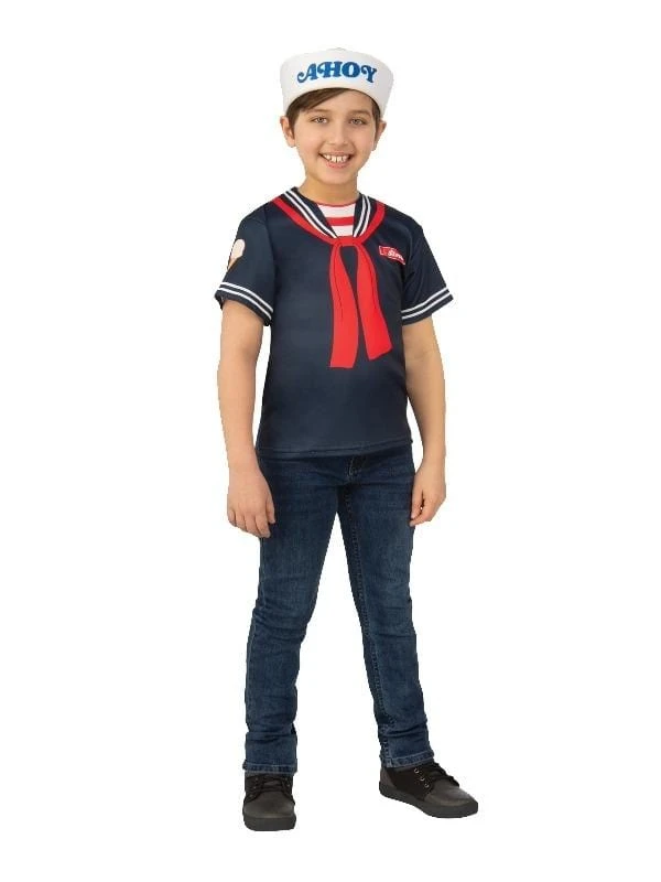 Are you into American Sci-Fi and horror? Well step back to the 1980’s in Hawkins, Indiana and be set to scream! With an investigation into the disappearance of a young boy and supernatural events occurring around town, Hawkins is awakened into a series of eerie and abnormal occurrences. Steve Harrington portrayed by Joe Keery is a student at Hawkins High School. He is friends with Tommy and Carol and the boyfriend of Nancy Wheeler. After the disappearance of Nancy’s best friend, he became a sort of authority figure and solidified himself into becoming a major player in the battle against the Mind Flayer. He also works at the Scoops Ahoy Ice Cream Parlour in this get-up. Perfect costume for Halloween or as a unique choice for 80’s parties.Â