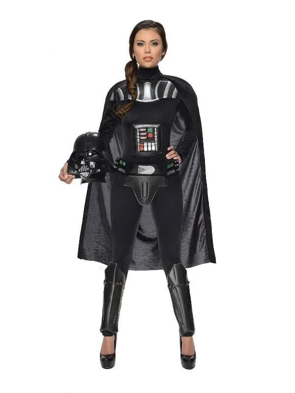 Ultimate villain of the original trilogy, Darth Vader was born Anakin Skywalker, a Jedi lured to the dark side by Palpatine. This iconic Lucas Film and Disney anti-hero of the Star Wars series, Darth is father to Luke and Leia and characterised by his black robes, cape, helmet and breathing device. Become the reigning Sith Lady of the Galactic Empire today with this fun genderbend cosplay – and may the force be with you.