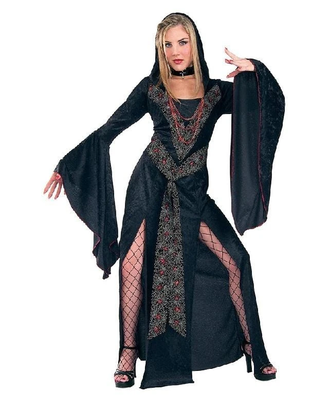 Gorgeous, errie and dramatic. That is the vibe this Halloween. With this hooded dress you can become an evil Queen, a spell making Witch, or perhaps a sinister Vampire of the night? Either way, you’ll lure in your prey so you can make your kill.Â