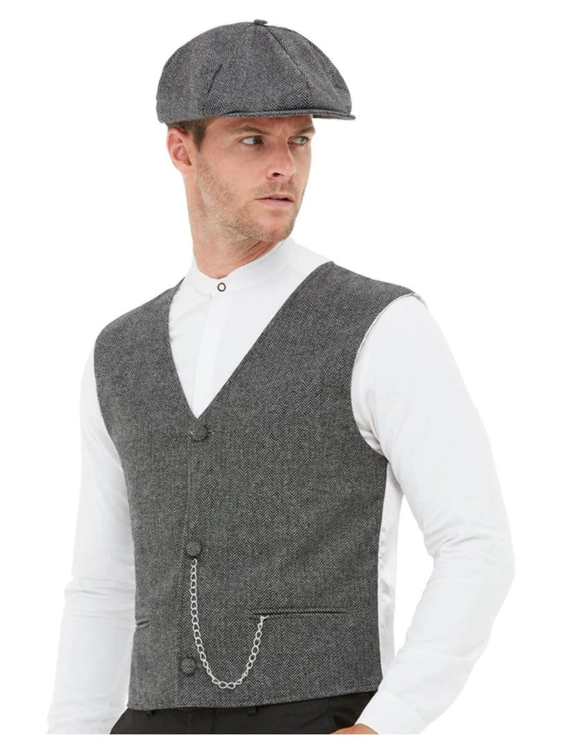 Alright lads, this 20s men’s gangster costume set is just what you need to start your life of (fashion) crime. Set includes grey tweed look waistcoat with grey satin back. Vest has attached faux silver chain and comes with matching tweed look flat cap. Perfect set to start your Peaky Blinders costume, innit my friend?