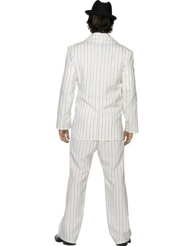 He’s one classy, smooth lookin’ bad guy. Look like Scarface in this white pin striped gangster costume suit. Costume includes trousers, jacket and tie. Shirt and hat sold separately.Â