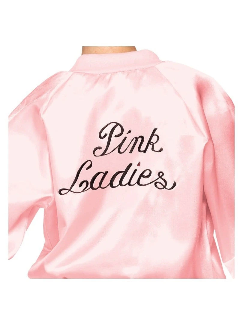 Pink Ladies jacket is a pale pink jacket with Pink Ladies embroidered on the front and the back. Jacket zips up the front. All other items and accessories sold separately.