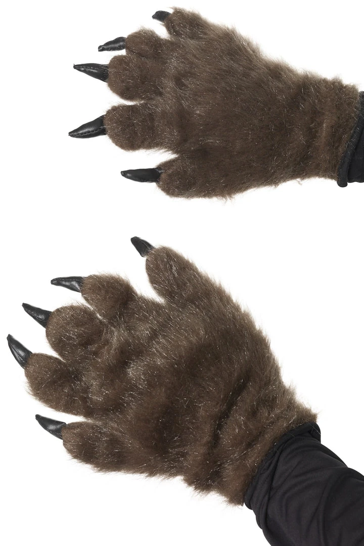 Complete your scary monster costume this Halloween with these Brown Hairy Monster Hand Gloves. Large brown furry gloves with soft black claws. One pair of gloves.