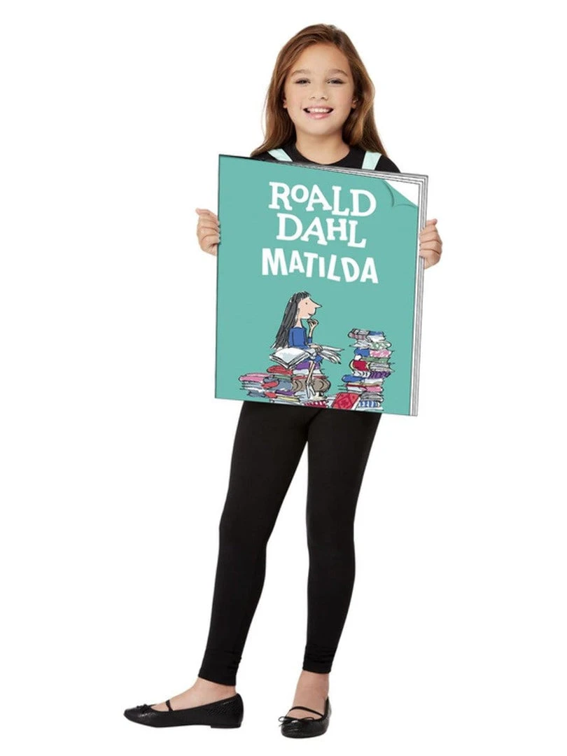 From Roald Dahl’s beloved classic children’s story Matilda, comes this book costume for children. This costume is simple and easy to wear at Book Week. Costume is one sided tabard which looks like a Matilda Book cover. It has adjustable shoulder straps. Black tights and top not included