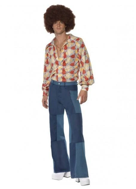 You can’t get any more 70s than a pair of denim patchwork flares. Match them with one of our groovy 70s shirts and you’ll be stoked. Perfect for disco and hippy parties. Package contains one pair of flares. Shirt, wig and all other accessories sold separately.Â
