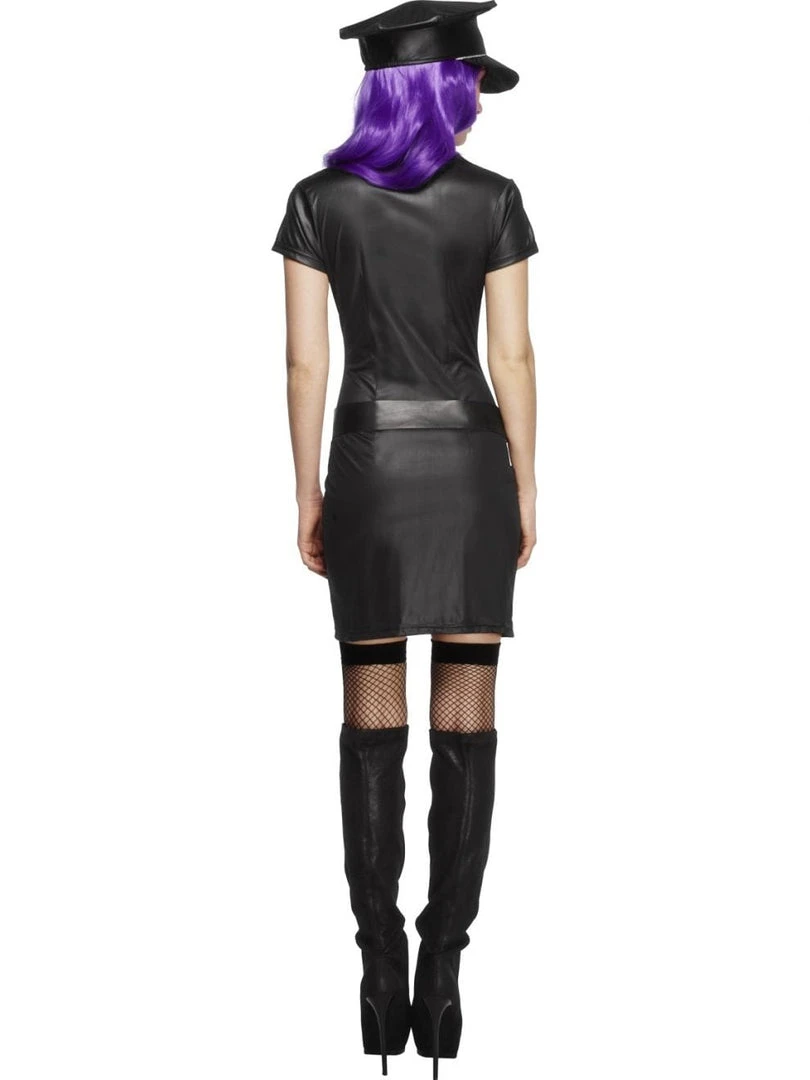 Have you been a bad boy? Do you need punishing? Hand out some punishment in this Sexy Cop Costume for women. Fever Corrupt Police costume is black stretch wet look dress that zips up the front and has police patch sewn on front. Comes with belt and matching hat.