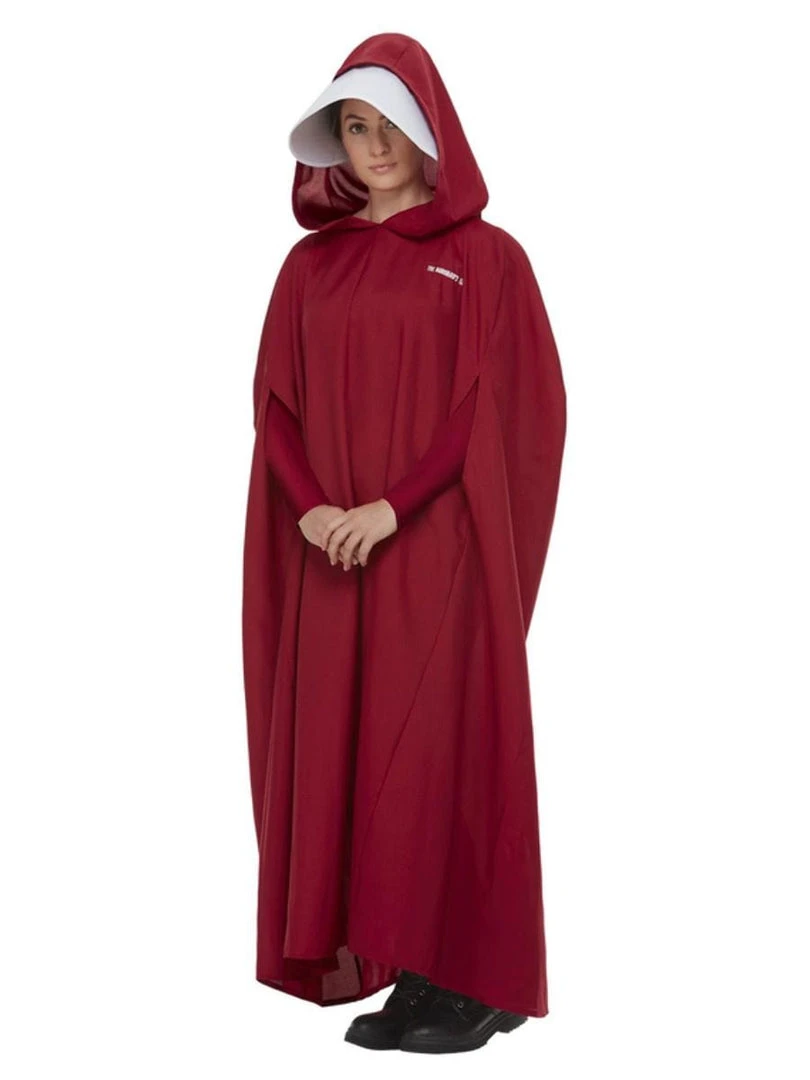 Is life reflecting art? Is this our own dystopian reality? Dress in this officially licensed Handmaid’s Tale costume at Halloween, on Black Friday, or to pop down to the shops for more toilet paper. If you may. Costume is long deep red hooded cloak with The Handmaid’s Tale embroidered on the front and white stiff bonnet.Â