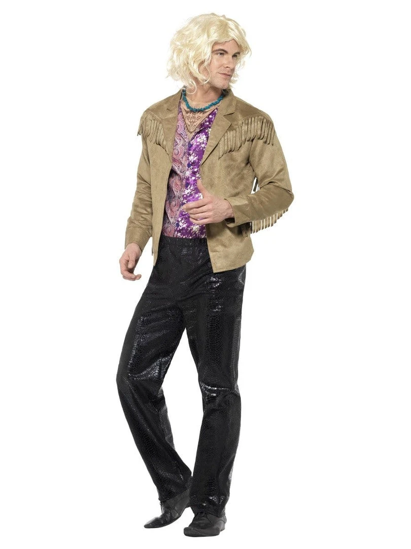 Brown jacket, attached mock shirt, trousers and necklace. Wig not included.