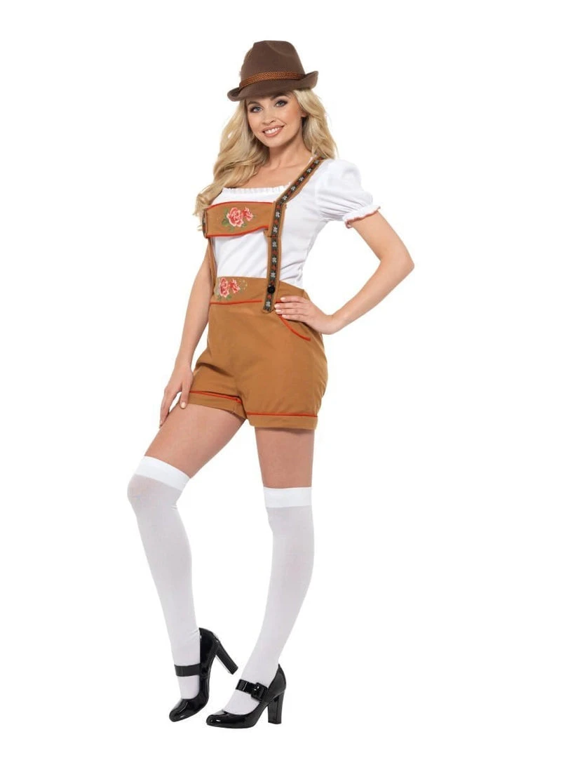 Bavarian Beer Girl Costume, Brown, with Top & Lederhosen