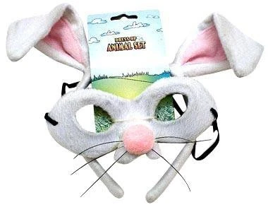 White and Pink Plush Easter Bunny White Rabbit Dress Up Set includes bunny ears on headband and matching mask with pink pom pom nose and whiskers. Perfect for Easter and Book Week.