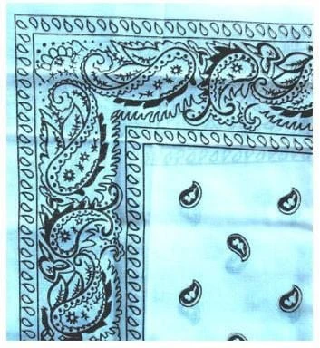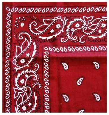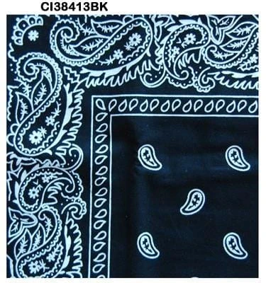 Paisley bandanna in black, brown, red or white. Suitable for cowboys, bikers and 80’s rock stars.Â