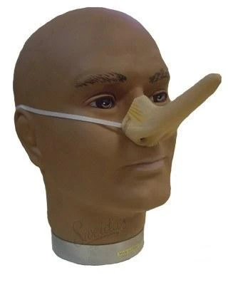Are you a real boy or a wooden marionette? Complete your Pinocchio costume with this long rubber plastic nose on elastic band!Â