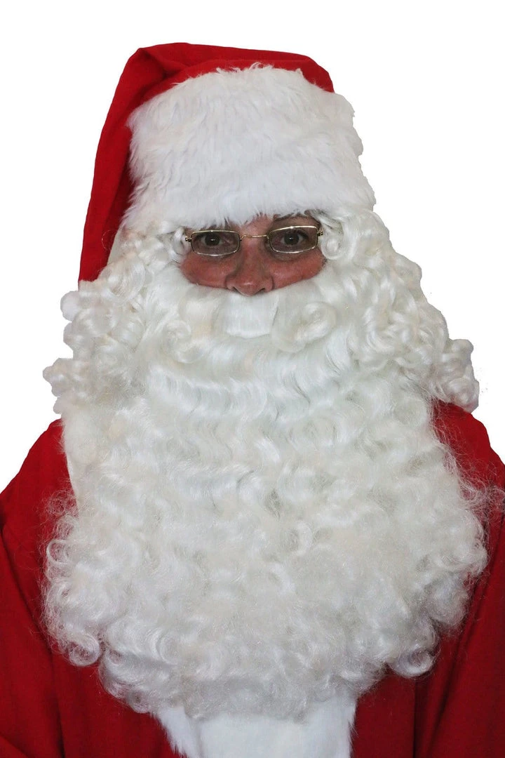 This Deluxe Santa Wig and Beard Set is the ultimate Christmas character wig and beard set. Set includes long white wavy beard and matching half wig. The half wig is specifically designed with the hot Australian summer in mind. The half wig means Santa will not be as hot as the top of his head is covered with Santa’s hat. These are the Santa wig and beard sets we use in our Santa Hire costumes. These wigs are purchased by some of Australia’s best known professional Santas.