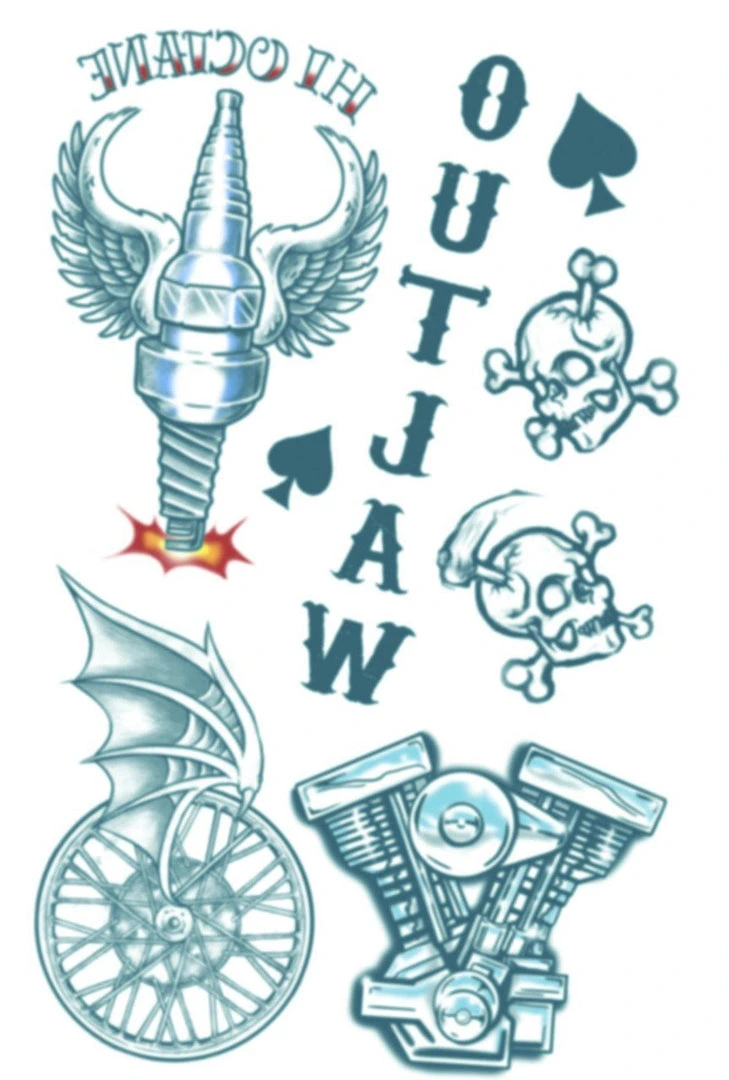 Fake realistic Biker Outlaw tattoos looks like real ink in the skin.