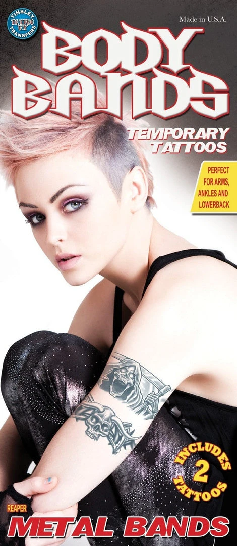 Grim Reaper Temporary Tattoo Body Bands for arms ankles and lower back. Includes 2 tattoos.