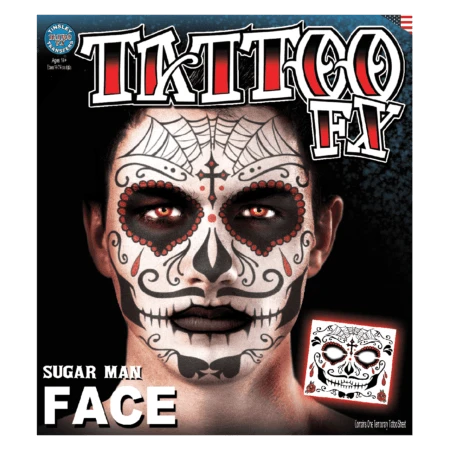 Sugar Man Face temporary day of the dead face tattoo. The Most Realistic Temporary Tattoos Anywhere!