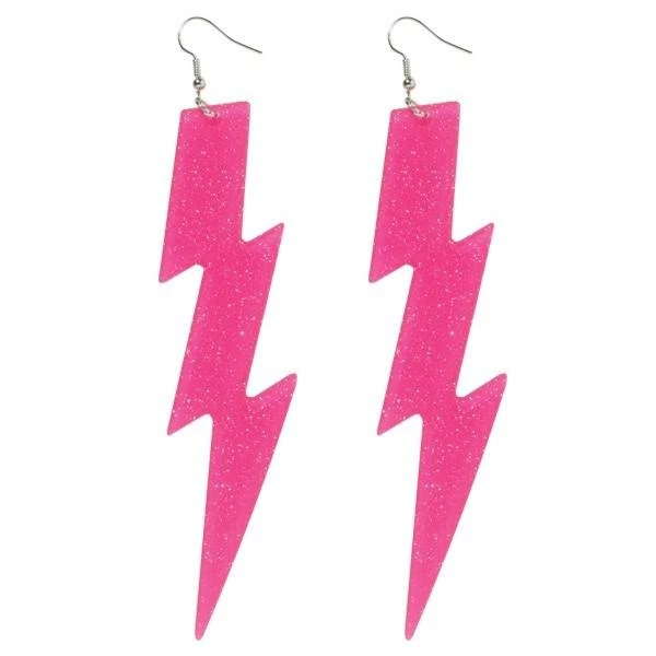 Like totally rad, totally 80s hot pink lightning bolt (pierced ear) earrings.Â